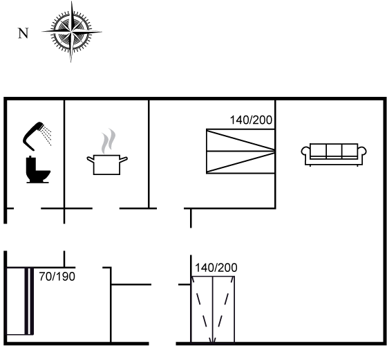 Hyggeligt sommerhus beliggende i villakvarter i Skagen by og i gåafstand til alt. 2 sovepladser befinder sig på sovesofa i opholdsstuen.