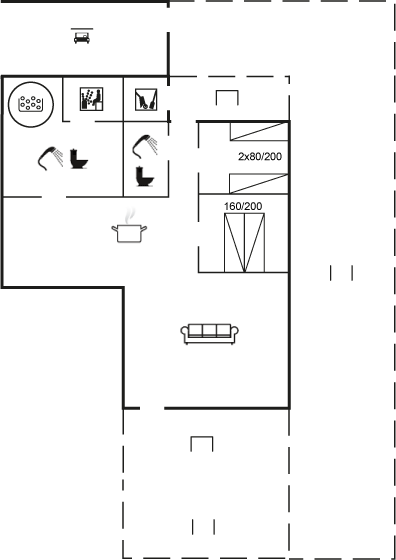 Sommerhuset egner sig til 6 personer og er bygget i 1983/1995. I 2023 gennemgik huset en større renovering. Der er i alt 2 soveværelser samt en hems. Sovepladserne fordeler sig på: 2 sovepladser i 160/dobbeltseng i det store soveværelse. 2 sovepladser i 80/enkeltsenge (kan selvfølgelig skubbes sammen) i det lille soveværelse og 2 sovepladser på hemsen i 160/dobbeltseng.