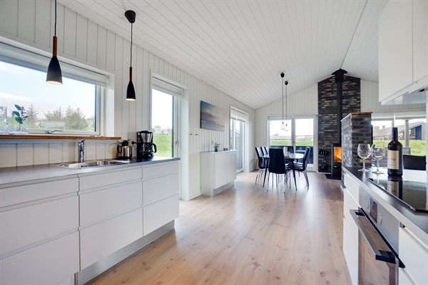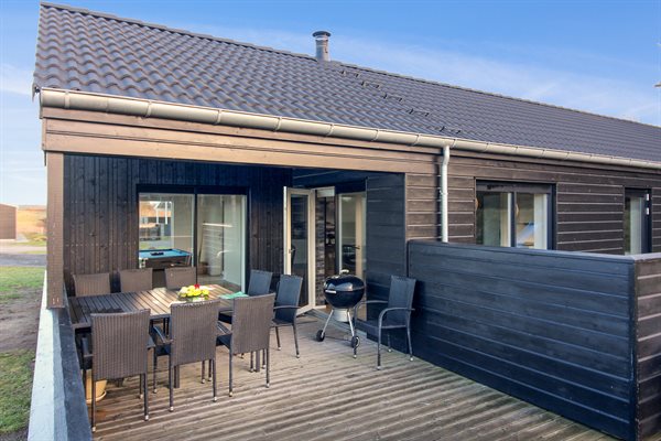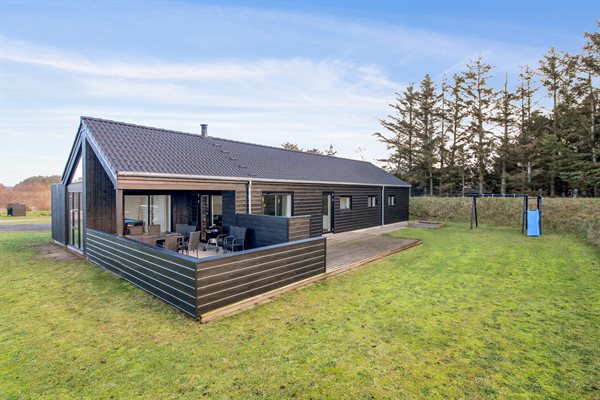 For enden af en blind vej ligger dette dejlige sommerhus, som giver den store familie nogle fantastiske forudsætninger for den ideelle ferie. Der er store terrasser på tre sider af huset, så her er der altid mulighed for at finde et godt sted at opholde sig i det fri.