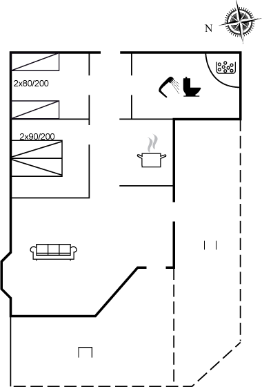 Velholdt sommerhus beliggende på en åben grund, på lukket vej, tæt ved stranden og Vesterhavet. Huset er indrettet med hems, hvor børnene kan boltre sig med at se film på TV og DVD.