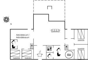 Huset er ideelt indrettet til flere familier, da det er opdelt i to soveafdelinger med hvert sit bad. Det store badeværelse er indrettet med et stort spabad samt sauna. Den flot møblerede stue fremtræder lys og indbydende takket være de store vinduespartier. Via en fransk dør har I adgang til aktivitetsrummet - her kan der dystes i flere forskellige spil, så medbring dit indre legebarn og husk: Tab og vind med samme sind.