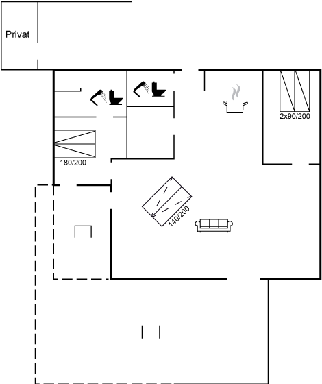 Husets indretning gør det særdeles velegnet til to par eller et par med børn.