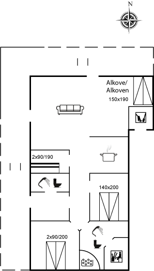 Dejligt sommerhus beliggende i et roligt og naturskønt område tæt ved fredede naturarealer med stisystem direkte ned til én af Vestkystens bedste badestrande. Huset er velindretttet med alkove i opholdsstuen, hvor 2 af sovepladserne befinder sig.