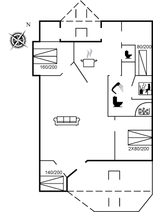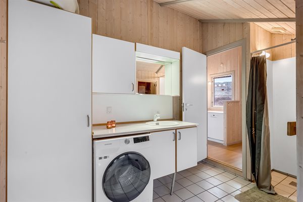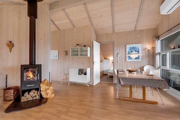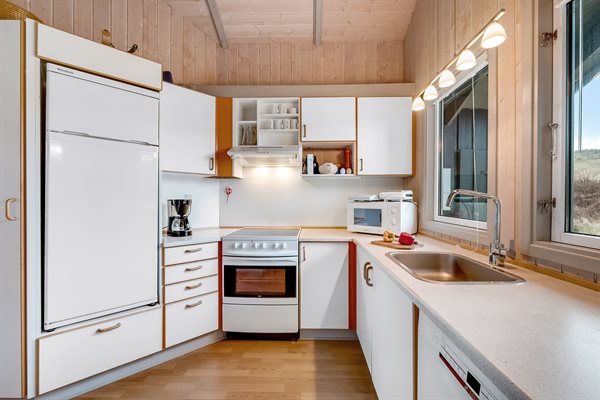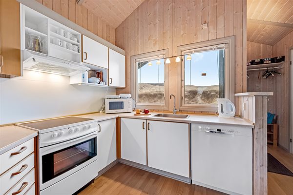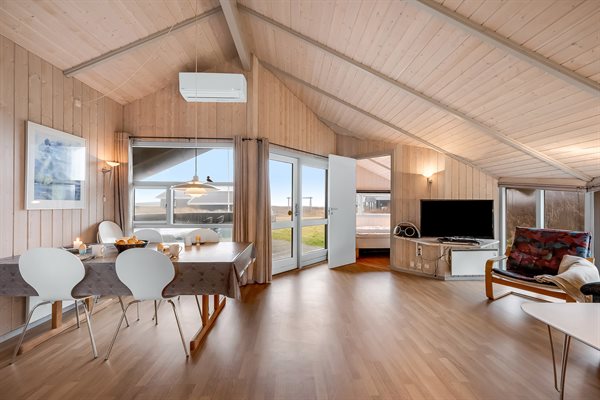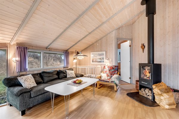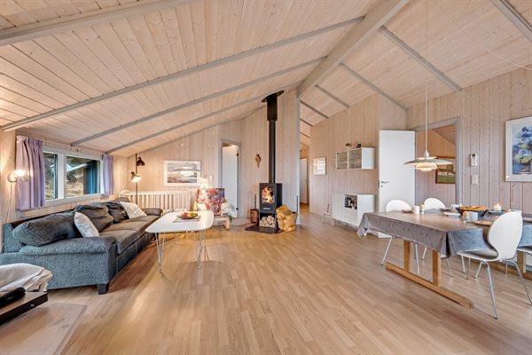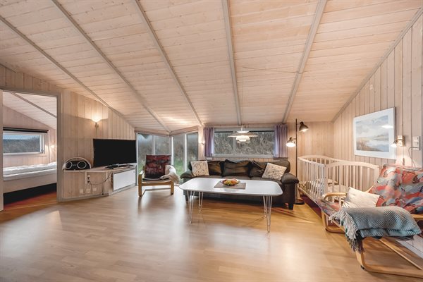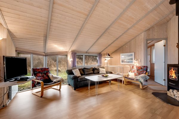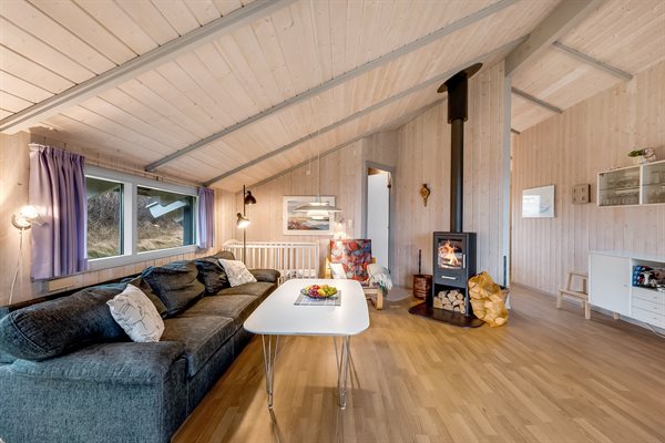 Dette dejlige feriehus, som inviterer til hygge og afslapning, ligger lige mellem hav og sø. Området indbyder til en ferie i ro og mag - og selv om der er mange andre ferierende i området er der gode muligheder for at slappe af.