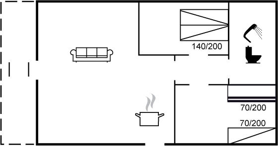 Et sommerhus, som er perfekt til hygge med familien, enten foran brændeovnen, som sørger for dejlig varme på en kølig sommeraften, eller i de komfortable sofaer med en god bog.