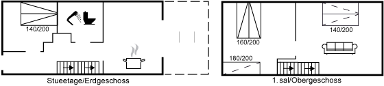 Der er i alt 2 soveværelser. Sovepladserne fordeler sig på: 4 sovepladser i dobbeltsenge. 4 sovepladser i sovesofa (dobbelt). 2 af disse sovepladser befinder sig i stuen. Derudover er der 1 stk. barneseng.