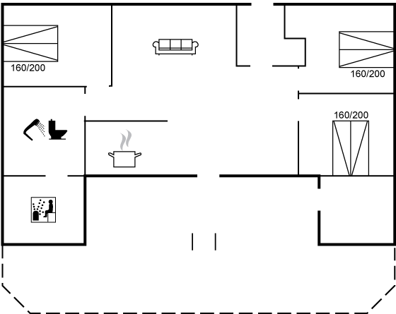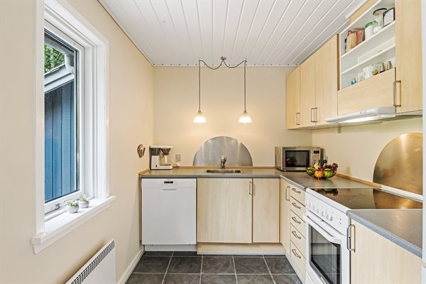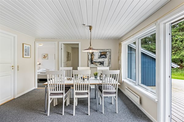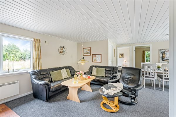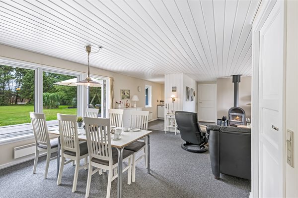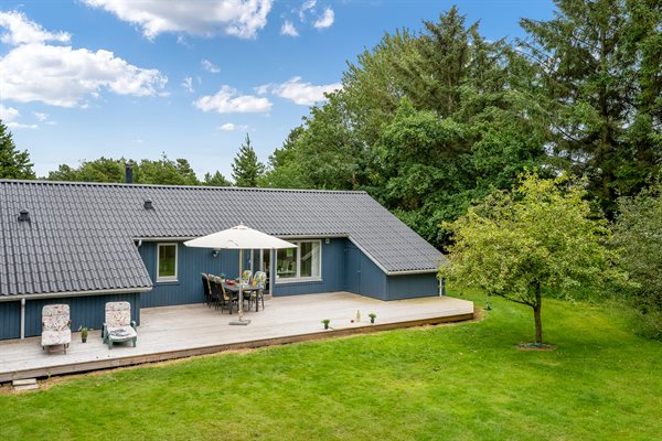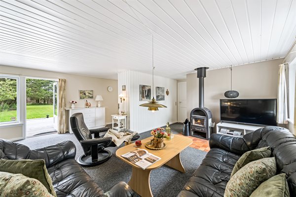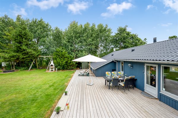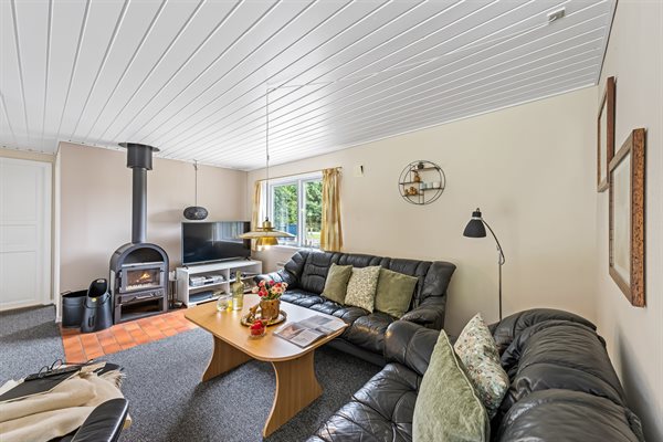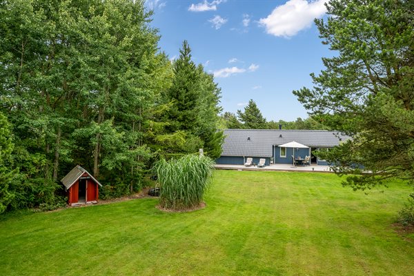 På grunden er der sandkasse og gynger til børnene. Feriehuset har tre rummelige værelser og stue med brændeovn. I huset findes også en stor sauna til afslappende aftener.