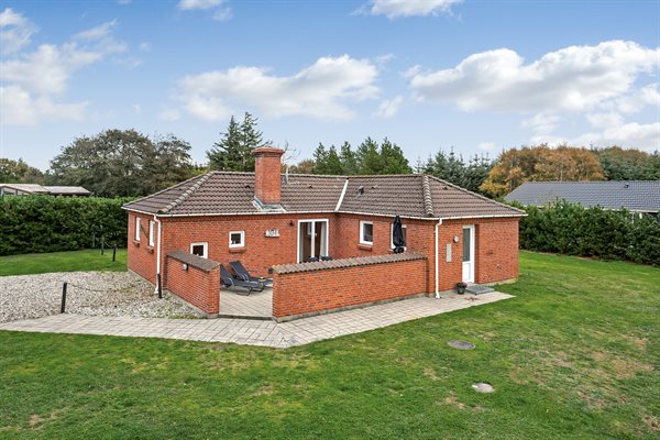 Velholdt 85 m2 stort, vinkelbygget sommerhuse i sten med tegltag, bygget i 1991, beliggende i rolige omgivelser på en 1920 m2 stor naturgrund omgivet af træer.