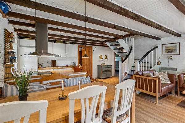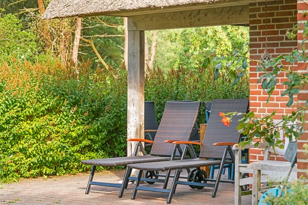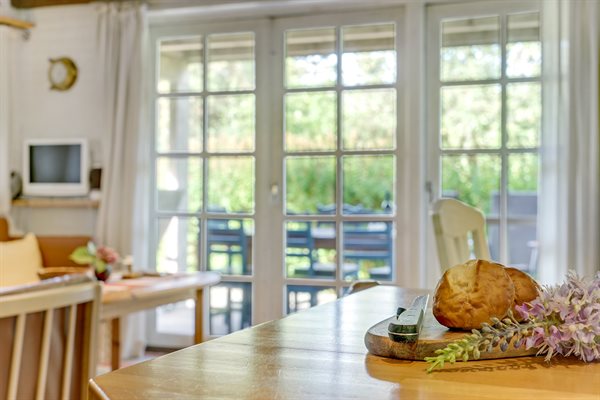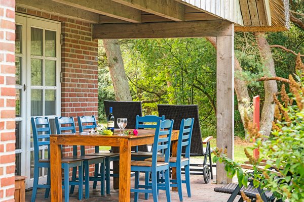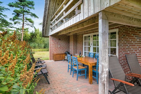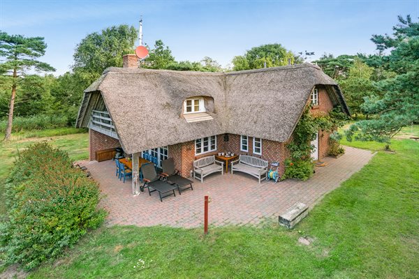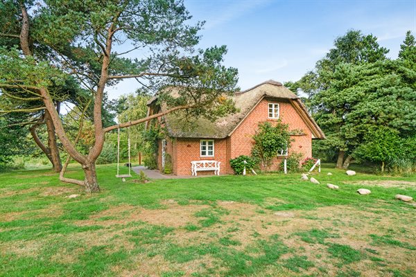 Dette dejlige stråtækte sommerhus ligger på en stor, lyngklædt grund med græsplæne nær Sønderstrand.