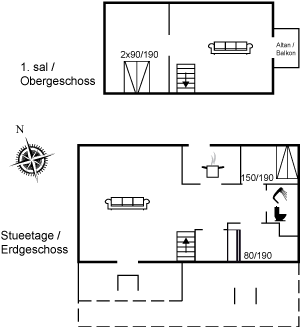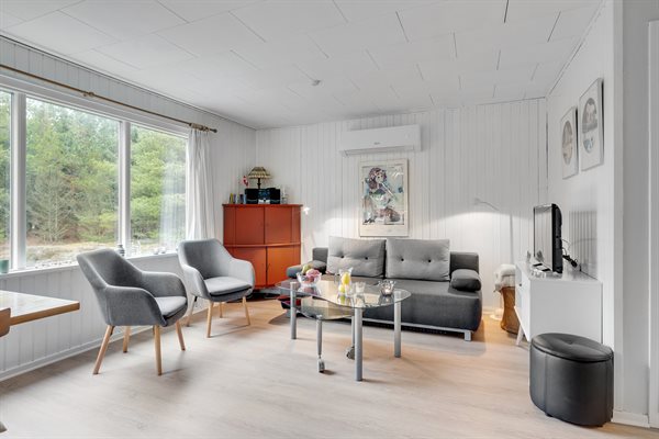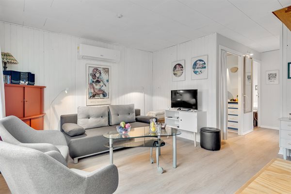 Holiday home suitable for 6 persons as well as 1 child up to 3 years. The holiday home is 60 m², in 2 levels, and is build in 1969. In 2019 the holiday home was partial renovated. You can bring along 1 pet. Cats are not allowed. The holiday home is equipped with 1 energy-saving air-to-air heat pump.} Freezer capacity of 24 litres. For the youngest ones there is 1 high chair.