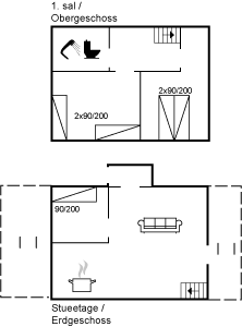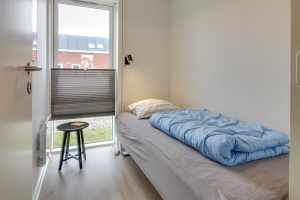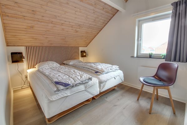Der er i alt 3 soveværelser. Sovepladserne fordeler sig på: 2 sovepladser i dobbeltseng. 2 sovepladser i enkeltsenge der kan skubbes sammen samt 1 soveplads i enkeltseng. Endvidere stilles der en barneseng til rådighed.