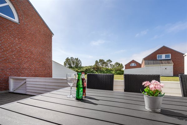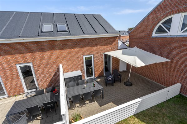 Ferieboligen er beliggende på en naturgrund med en dejlig lukket terrasse på m² med en låge direkte ud til et grønt areal. Terrassen er sydvendt, så der er mulighed for at nyde solen det meste af dagen/aftenen. Skal morgenkaffen nydes i tidlig sol, er der et lille bord og 2 stole foran huset mod øst. Der er et redskabsrum med legeredskaber og der stilles en grill til rådighed. Der er 2300 m til havet. Der er 1000 m til Vadehavet. Nærmeste forretning er beliggende i en afstand af 1000 m.