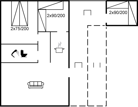 - Husareal er 50 m2