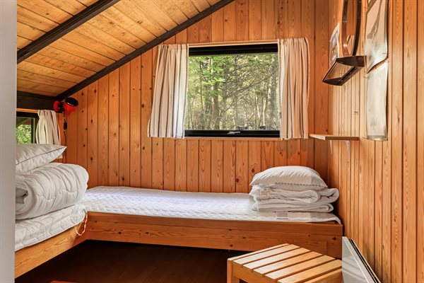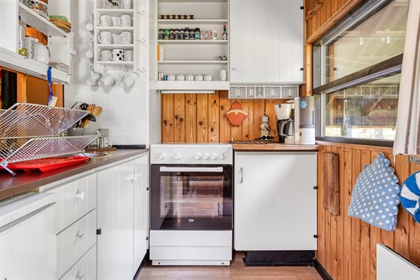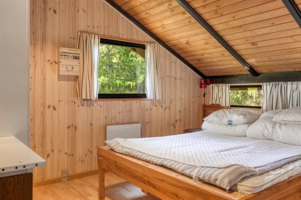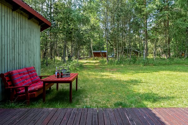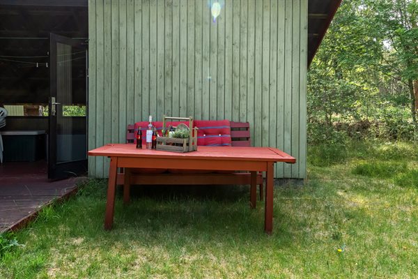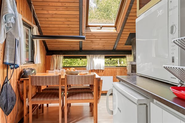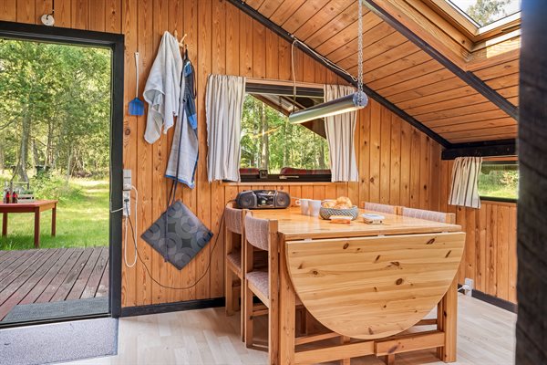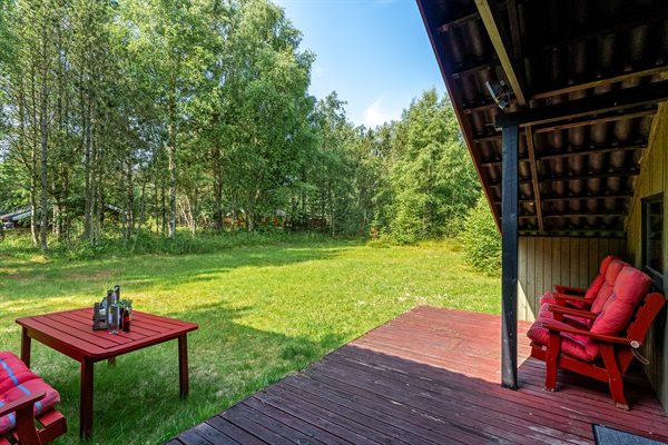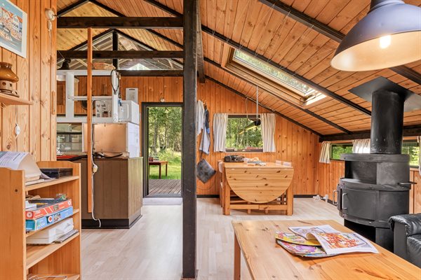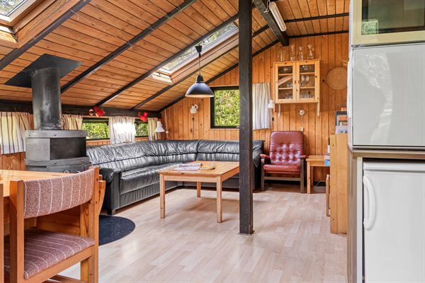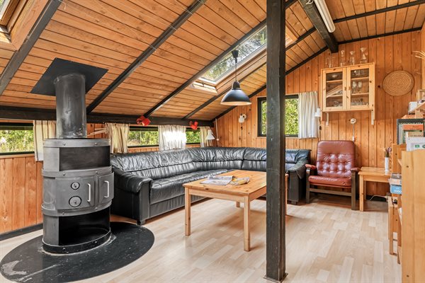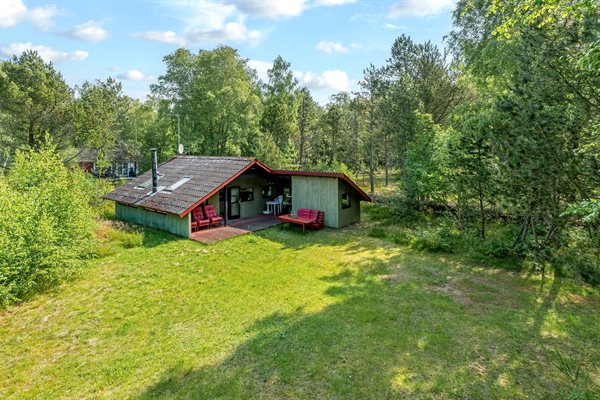 Ældre feriehus beliggende på ugeneret, solrig naturgrund med træbevoksning.Indrettet med ældre praktiske møbler.Brændeovn med gratis brænde.