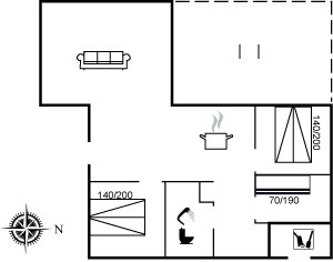 Dejligt sommerhus i sten, i forskudt plan og med hems. Beliggende på naturgrund, kun få hundrede meter fra den børnevenlige sandbadestrand. Huset har to terrasser med havemøbler, solvogne og sandkasse til børnene.