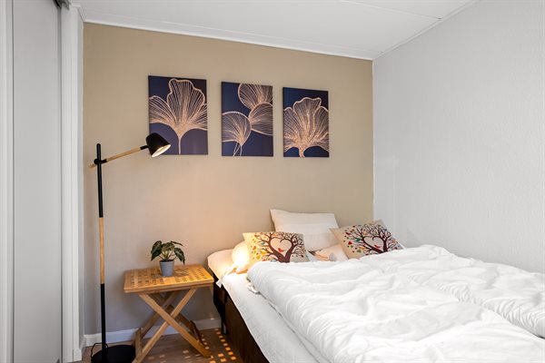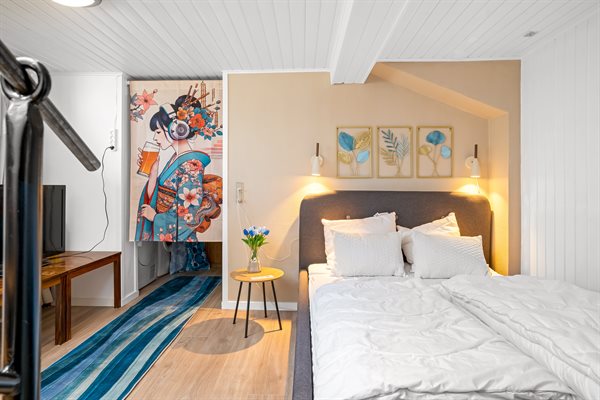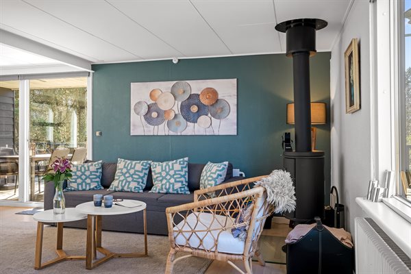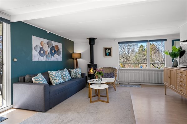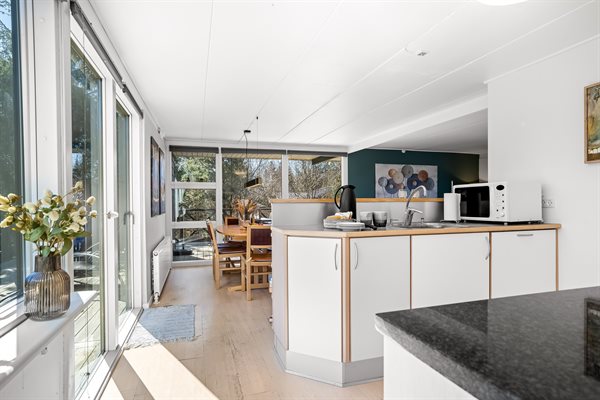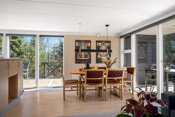 Skønt sommerhus beliggende på en stor grund tæt på stranden mellem Hou og Hals. Rundt om huset findes en skøn, stor og højtbeliggende terrasse med udsigt over den skrånende grund.