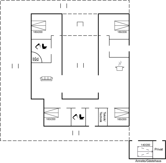 Med sin gennemtænkte planløsning, som er opdelt i separate afdelinger, kan hver familie trække sig tilbage, mens der stadig er masser af plads til fælles samvær. Sommerhuset har plads til op til 10 personer, og alle soveværelser er indrettet med gode senge, der sikrer en god nats søvn efter en dag, hvor du har udforsket Ebeltoft og det omkringliggende område.
