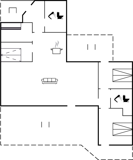 Sommerhuset er godt indrettet og med sine i alt 10 sovepladser passer det rigtig fint til f.eks. 2 familier. Husets hjerte er det meget flotte, store køkken/alrum og stue i ét, hvor den dejlige udsigt kan nydes over området og med havet i baggrunden. De store vinduespartier indrammer udsigten og lukker en masse lys ind.