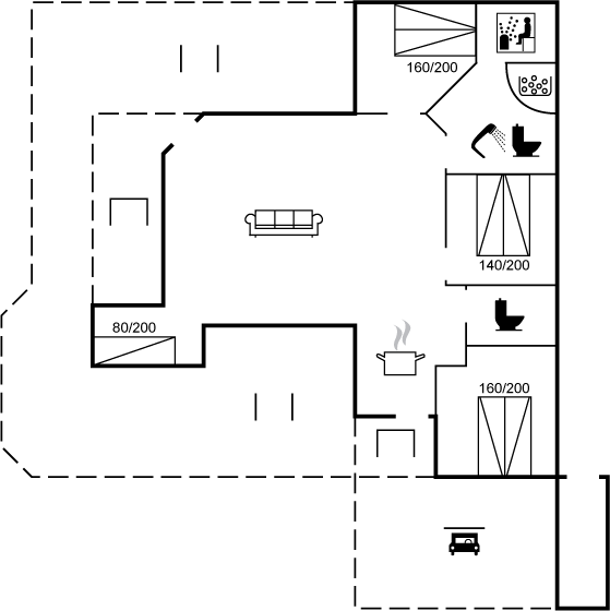 Udelivet er en oplevelse i sig selv med en dejlig overdækket terrasse og skulle du have behov for lidt ekstra varme på en sommeraften så er der mulighed for at tænde for terrassevarmeren. Desuden findes der et stort, indhegnet terrasseområde, som er vendt mod sydvest. Her kan du nyde solen dagen lang og se den gå ned om aftenen. Ønsker du lidt ekstra hygge om aftenen så kan du tænde op i den udendørs pejs, som også er at finde på terrassen. Græsplænen giver rigelig plads til boldspil og leg – som f.eks. en uformel fodboldkamp, da der også findes fodboldmål. En del af græsplænen er indhegnet – her finder du gynge og sandkasse, på denne måde kan du roligt lade børnene lege udenfor.