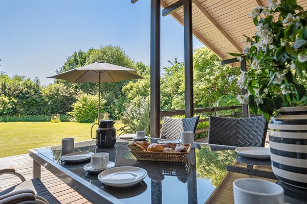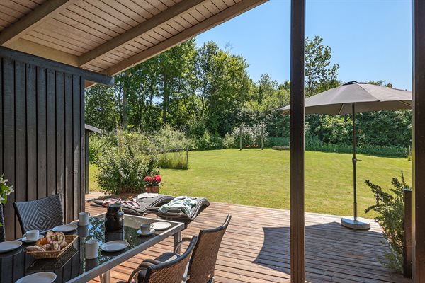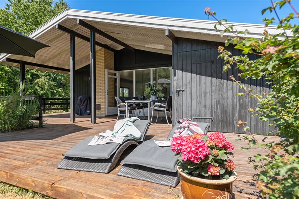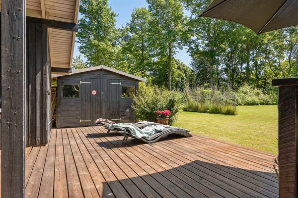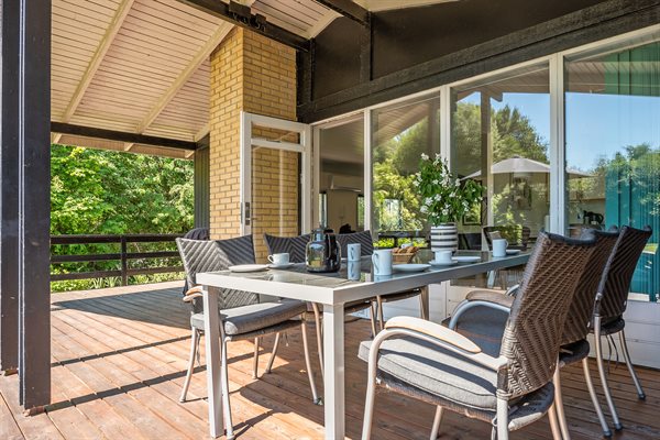 Til huset hører flere gode terrasseområder, og på grunden er der god plads til udendørs aktiviteter.