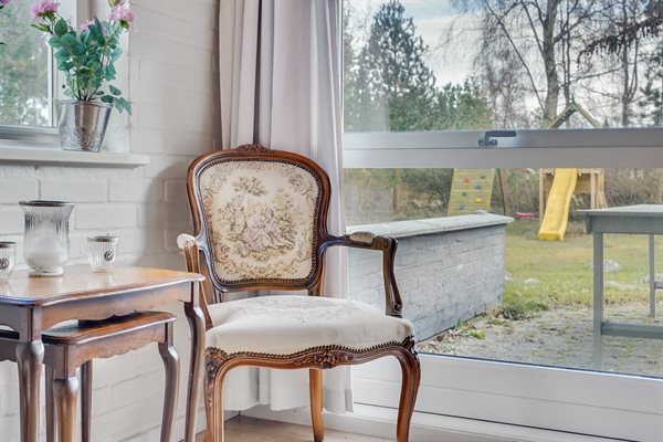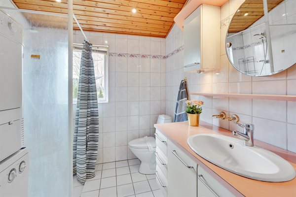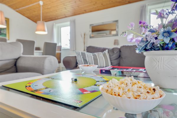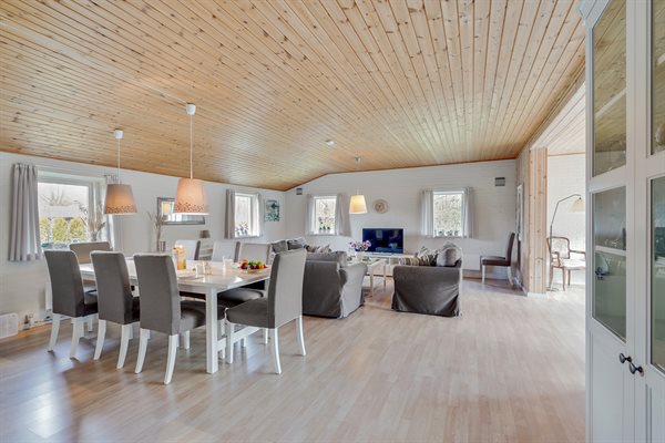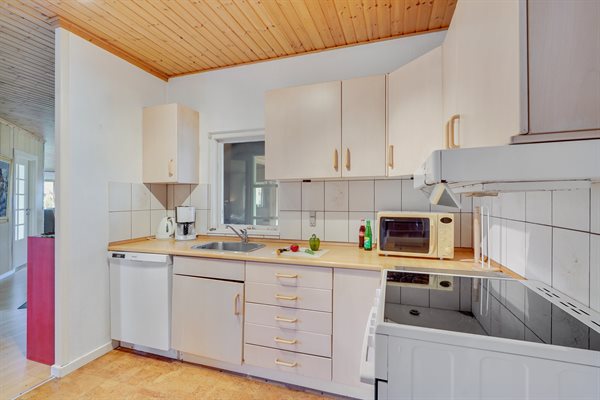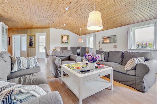 Hyggeligt sommerhus beliggende lige bag diget på en lukket og ugenert grund, hvor der bagved huset er god plads til leg og anden udendørs aktivitet. På den modsatte side af vejen, som er minimalt trafikeret, er der anlagt en sti, der fører lige ned til den børnevenlige strand.