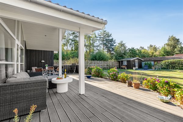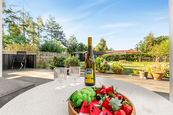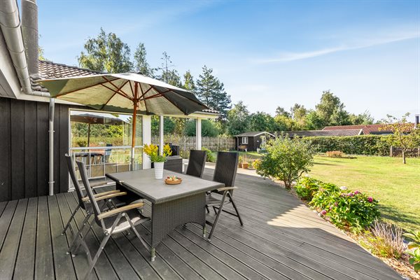 På husets skønne terrasse kan du tilbringe timer i det fri med at solbade, læse en god bog eller nyde et lækkert måltid, som er tilberedt på husets grill.