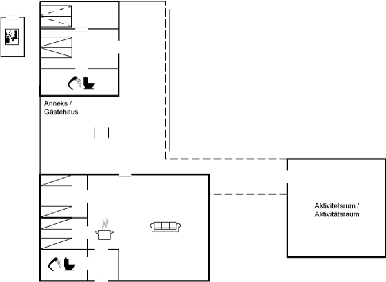 Fra terrassen er der også adgang til det store anneks med 2 ekstra soveværelser og 1 ekstra badeværelse. Ligeledes findes et separat aktivitetsrum med billard, bordtennis, bordfodbold samt dart. Perfekt til et par hyggelige timer sammen med familie og venner. Slut dagen med et glas vin og nogle gode bøffer på grillen. Måske overnatter du i shelteret, som du ligeledes finder på grunden.
