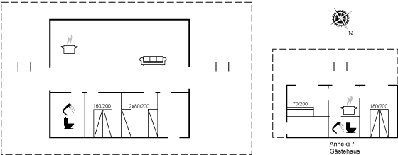 I annekset er der yderligere 2 soveværelser, hvor det ene er med dobbeltseng og det andet med køjeseng. Køjesengene måler 70x200 cm og er der bedst egnet til børn og unge.