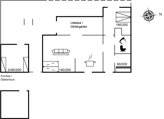 Dette charmerende og hyggelige sommerhus er beliggende i et roligt sommerhusområde i landlige og naturskønne omgivelser og med kun 225 meter til en dejlig børnevenlig og lavvandet sandstrand. I den hyggelige have kan der leges med børnene og de gode terrasser og den dejlige udestue giver god mulighed for hygge og afslapning. Indenfor er stue, spiseplads og køkken ud i et med udgang til udestuen. Der er 2 soveværelser i huset med hver 2 sovepladser samt en dobbelt sovesofa i stuen. Derudover er der 2 sovepladser i annekset. Badeværelset er med bruseniche og gulvvarme. Der er tillige udebruser og vaskemaskine. Huset opvarmes energivenligt med luft-til-luft varmepumpe og der er brændeovn til de hyggelige stunder.