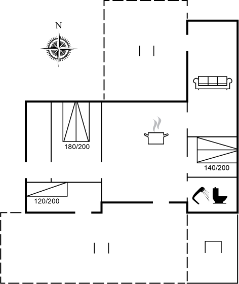 Indretningen byder på et åbent køkken-alrum i forbindelse med stuen, flere soveværelser samt badeværelse. Der er direkte udgang til en stor terrasse med gode solforhold – ideel til udendørs spisning og afslapning. Den ugenert beliggende have giver mulighed for både leg og ro.