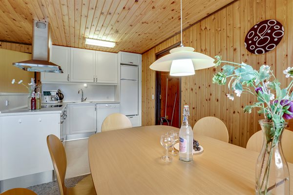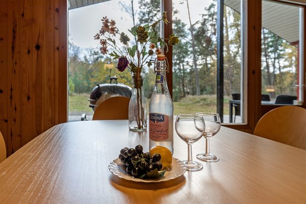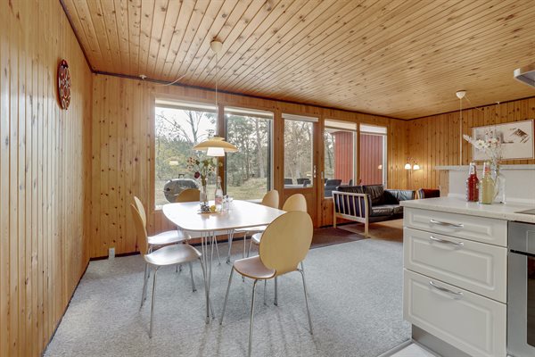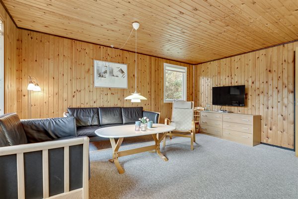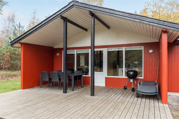 Dette særdeles velholdte sommerhus ligger på en stor grund - nær ved sandstrand, golfbane og det lille hyggelige røgeri i Bakka Havn.