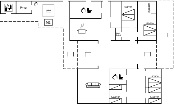 Huset med 5 værelser og 3 hemse, har pladst til hele 18 gæster, og indbyder til underholdning for hele familien. Her er både aktivitetsrum, udendørs sauna, og en skøn wellnessafdeling med både udendørs pool og spabad.