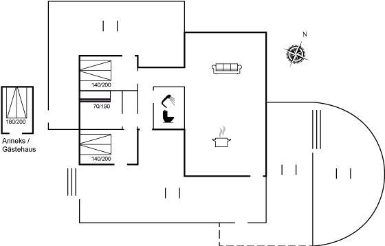 Nærmeste badestrand: 200 m