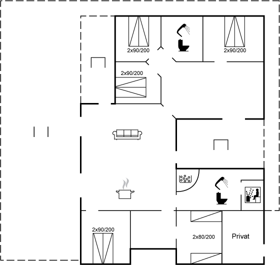 Vil I skrue helt op for afslapningen kan I, i det ene af de to badeværelser, synke ned i det varme vand i sommerhusets spa eller nyde en tur i saunaen efter en lang gåtur på stranden. Afslapning kan også anbefales i den store sofa med en god bog eller bare ved at kigge på det smukke landskab udenfor med den knitrende brændeovn i baggrunden.